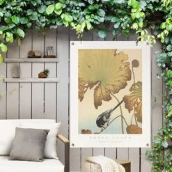 Tuinposter Ohara Koson Kwikstaart Op Lotusplant 80×60 Cm Bruin