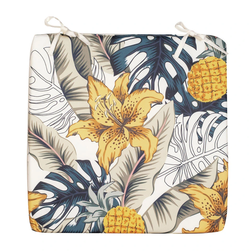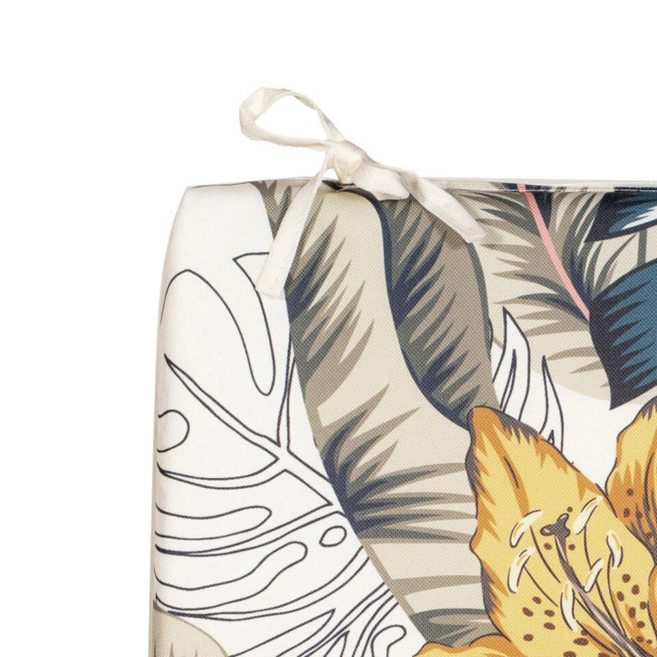 Anna’s collection Stoelkussen bloem wit/geel 40 x 40 cm. Deze mooie kussens zijn water en UV-bestendig. Materiaal: 100% polyester. Wasbaar: ja, de hoes is wasbaar op 30 graden. Stoelkussens voor bij uw tuinstel. Diverse mooie luxe kleuren voor een topprijs. Kussen voor tuinbank.