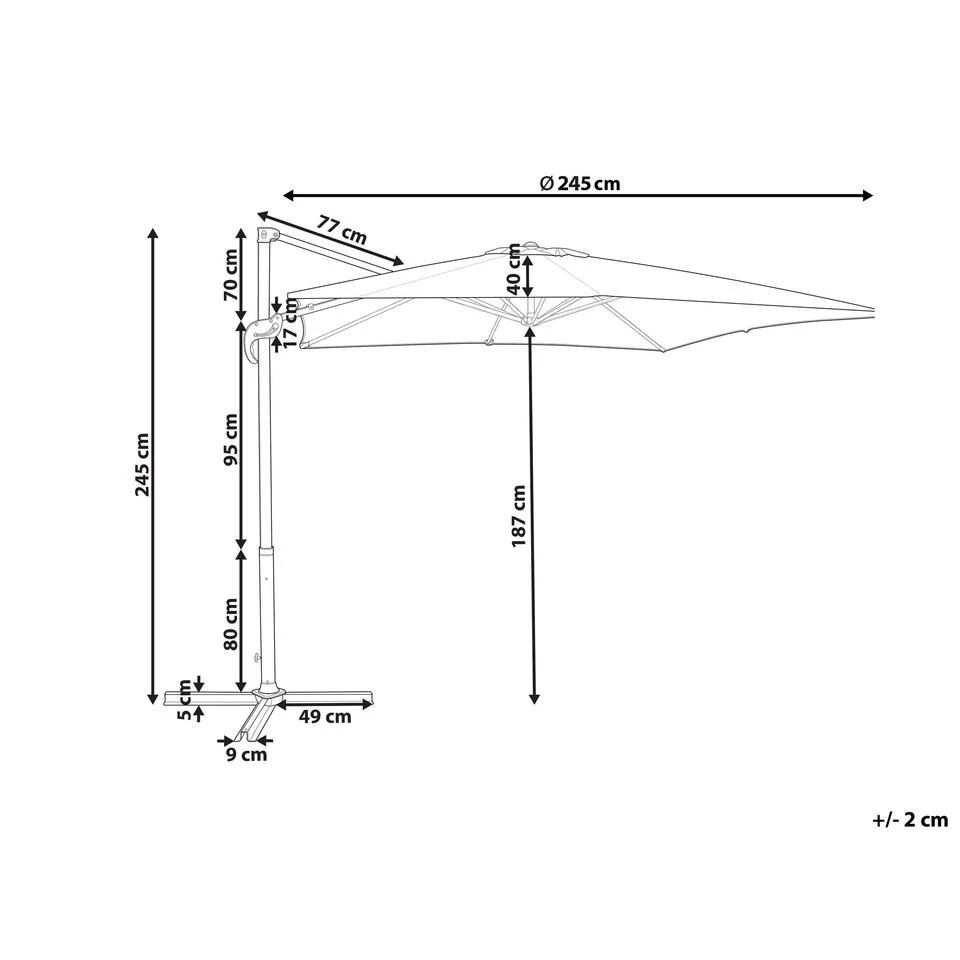 Beige zonnescherm voor hete zomerdagen. Op warme zomerdagen is men vooral blij met een heerlijk koele schaduw in de open lucht. Dit elegante zonnescherm overtuigt met zijn lichte slingermechanisme, het mokka-gekleurde duurzame polyester en het stevige aluminium frame. De kap is 360 graden draaibaar en biedt optimale bescherming tegen de zon. Een stevige stalen dwarspoot zorgt voor een stabiele voet.