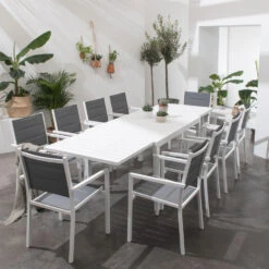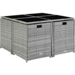 Rotan tuinset met tafel en Ottomanen. Geniet van het buitenleven en vul je buitenruimte aan met deze tuinset. De set bestaat uit een bank, twee fauteuils, twee krukken en een eettafel en is gemaakt van duurzaam PE-rotan en aluminium. De UV-bestendige rug- en zitkussens hebben comfortabele schuimvullingen en afneembare hoezen. Twee voetenbankjes bieden extra zitplaatsen en kunnen als voetenbankje worden gebruikt.