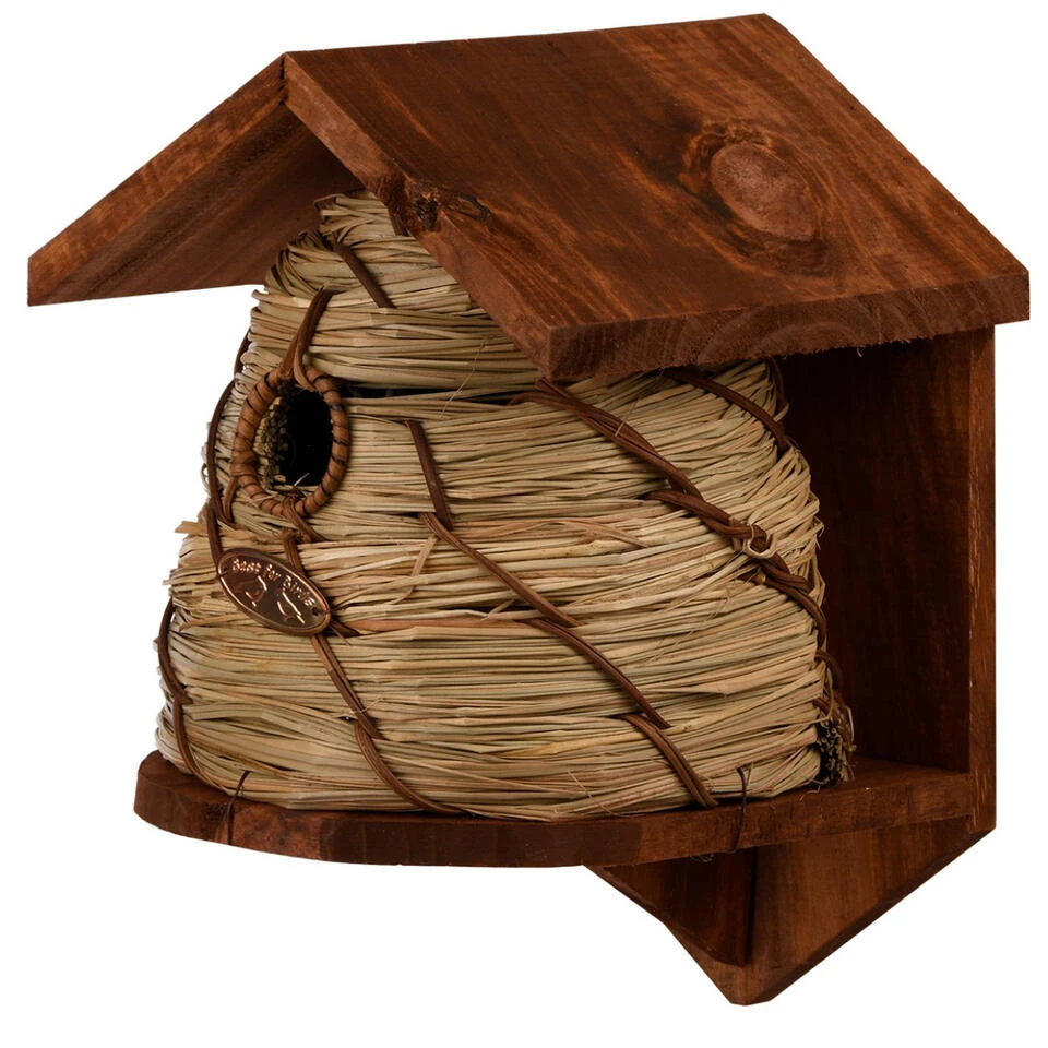 Door deze materialen heeft het vogelhuisje een heel natuurlijke uitstraling en komt het in de buurt van de kleur van een echte bijenkorf. Het vogelhuisje is makkelijk te bevestigen.