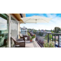 Zorg ook op een klein terras of balkon voor voldoende schaduw met deze handige, rechthoekige muurparasol! Dankzij het handige muurbevestigingssysteem hoef je geen plaats te voorzien voor een parasolvoet. Bovendien scharniert de aluminium arm gemakkelijk naar alle kanten, zodat je precies waar nodig schaduw kan creëren.