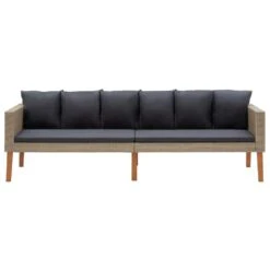De loungebank heeft een hoogte van 68 cm en een breedte x diepte van 222 cm. De zithoogte van de bank is 42 cm, de salontafel heeft dezelfde hoogte. De zitbreedte van de rechte kussen is ieder 70 cm. De bank, inclusief kussens, heeft een zitdiepte van 50 cm. De armleuningen hebben een hoogte van 32 cm, gemeten vanaf de zitting. Het potenframe van de bank en de salontafel is 5×5 cm.