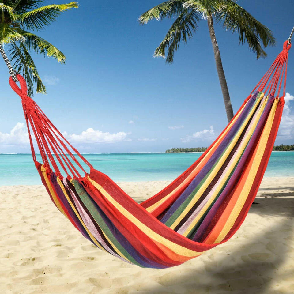 Een hangmat is het ultieme ontspanningsproduct en deze levendig gekleurde katoenen hangmat ziet er zeker geweldig uit in je tuin en draagt bij aan het zomergevoel! Je kunt hem binnen enkele seconden opzetten zodat de ontspanning snel kan beginnen! Omdat hij gemaakt is van katoen, voelt de hangmat zacht aan en is hij wasbaar en ademend.
