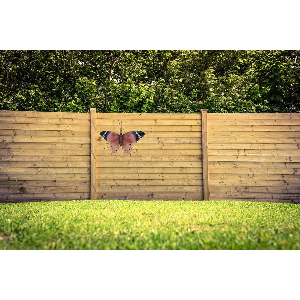 Merkloos Tuindecoratie Vlinder – Roestbruin En Roze – Metaal – 35 X 24 Cm