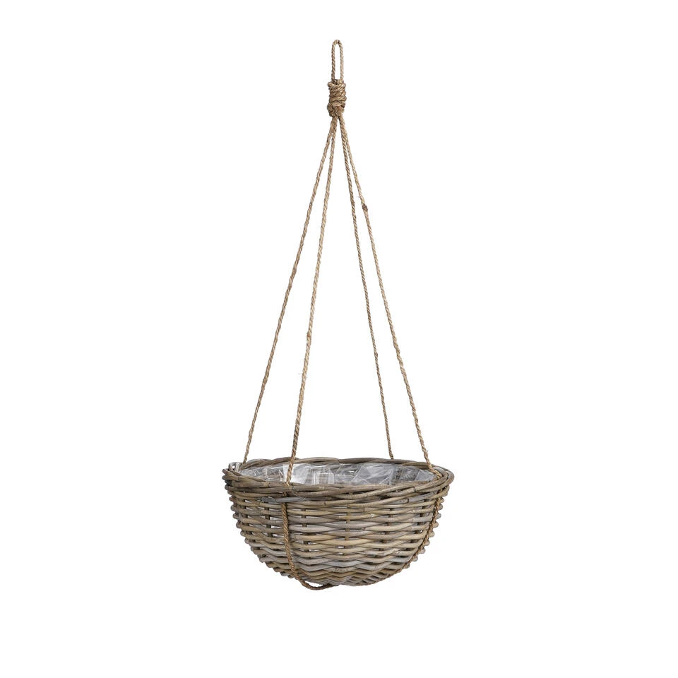 Iets anders dan een bloempot in de tuin? Ga voor natuurlijke plantenmanden! Deze Marcia plantenmand van Mica Decorations kun je leuk ergens ophangen. Ideaal voor in je tuin, terras of balkon! De ronde hangmand is handgemaakt van rotan en is uitgevoerd in een prachtige vergrijsde kleur. De binnenkant is voorzien van een plastic liner, waardoor je er gemakkelijk een plant in kan poten. De rotan mand is 20 cm hoog en heeft een diameter van 40 cm. Ook stijlvol om te combineren met meerdere rotan manden uit de Marcia collectie van Mica Decorations.