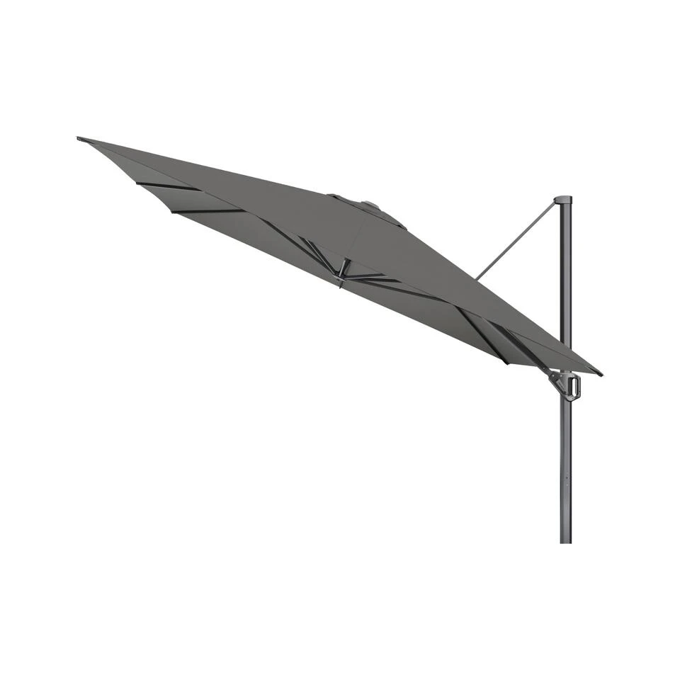 De Challenger telescope parasol wordt altijd met een stofklasse 4 parasoldoek geleverd. Bij deze parasol is het parasoldoek uitgevoerd in faded black. Het doek is gemaakt van spuncrylic stof. Het doek is gekleurd vanuit de garen wat zorgt voor een lichtechtheid van 7. Dit betekend dat de eerste zichtbare verkleuring pas na 350 dagen in de volle zon zichtbaar zal zijn. Ook de UPF waarde* van het parasoldoek van de Challenger telescope is erg hoog. De afmetingen van het parasoldoek is 350×350 cm.