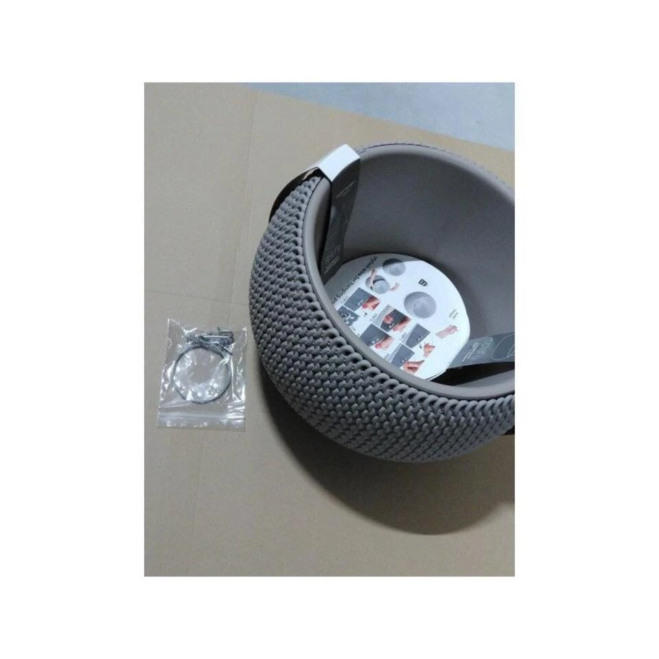 Taupe kunststof hangende Splofy bloempotten/plantenpotten 37 cm inclusief metalen haak. Kras en stootvaste ophang bloempotten/plantenbakken met de uitstraling van zachte, grof gebreide wol. De hangende bloempotten/plantenpotten zijn uitgerust met een binnenbak en een metalen haak. De ophangpotten zijn geschikt voor binnen en buiten gebruik. Serie: Splofy round ws. Formaat: diameter: ca 37 cm. Hoogte: ca 21,8 cm. Inhoud: 9 liter. Materiaal: kunststof. Tuin/huisdecoratie hang bloempot/plantenbak.