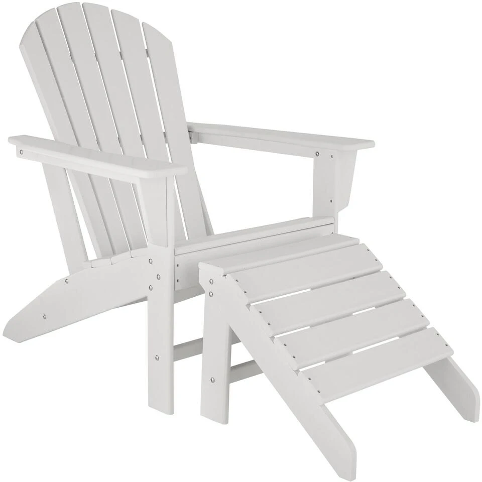 Tectake – Tuinstoel Joan Met Voetenbankje Wit – In Houtlook