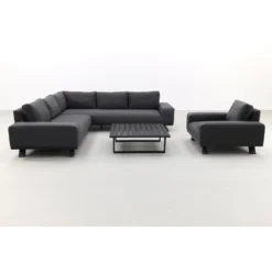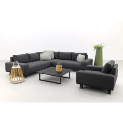 De Barcelona loungeset heeft een stevig aluminium frame welke afgewerkt is met een antraciet kleurige coating. Aluminium heeft als voordeel dat het niet kan verroesten en weinig onderhoud nodig heeft. Daarnaast is het ook nog eens licht van gewicht. Om dit frame is de weerbestendige Sunbrella stof bevestigd. Deze stof is water en vuil afstotend en eenvoudig schoon te maken met water en eventueel een sopje. Het frame van de loungetafel is ook gemaakt van aluminium en heeft een tafelblad van keramiek. Keramiek heeft een hoge krasvastheid en is bestand tegen zowel hoge als lage temperaturen. Hierdoor is het tafelblad perfect geschikt voor buitengebruik.