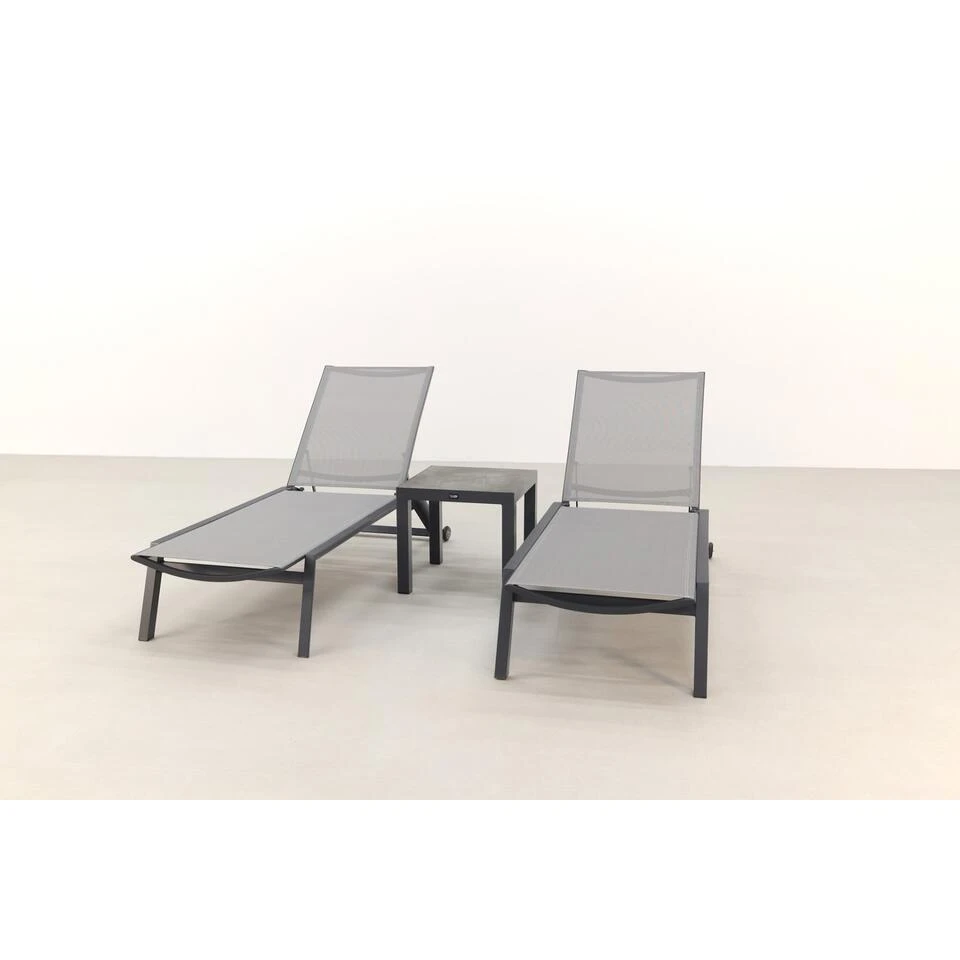 Cairns ligbed met wielen – Antraciet + Atlanta bijzettafel