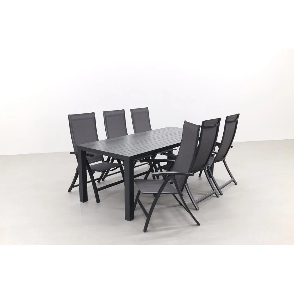 Haal het maximale uit je zomer met deze prachtige 7-delige tuinset! Deze set bestaat uit 6 stijlvolle Corsica tuinstoelen en een prachtige Lena tuintafel, perfect voor al je zomerse diners en borrels in de tuin. De stoelen zijn gemaakt van hoogwaardig aluminium en hebben een comfortabele zit- en rugleuning van textileen. De verstelbare rugleuning en de mogelijkheid om ze op te vouwen maken deze stoelen extra praktisch. De tuintafel is eveneens gemaakt van duurzaam aluminium en biedt ruimte aan 6 personen. Met een afmeting van 210 x 90 cm is deze tafel ideaal om heerlijk buiten te eten met vrienden en familie. Of je nu geniet van een uitgebreid diner of een gezellige borrel, deze set biedt de perfecte plek om te ontspannen en te genieten van het buitenleven. Wacht niet langer en haal deze prachtige tuinset in huis voor een zomer vol stijl en comfort! Bestellen kan direct online.