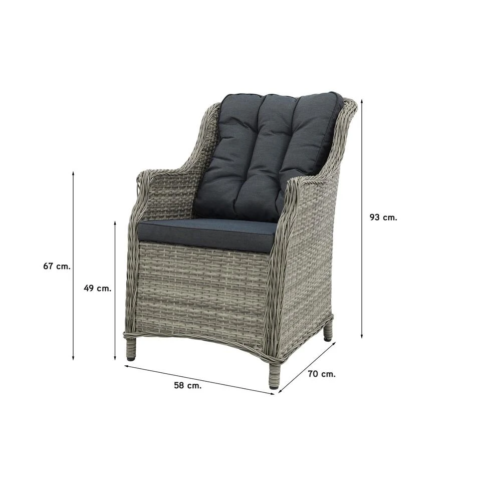 Het frame van de King dining tuinstoel is gemaakt van aluminium. Voor dit materiaal is bewust gekozen. Aluminium is namelijk erg stevig, licht van gewicht en het grote voordeel is dat aluminium niet kan gaan roesten. Om het frame van de tuinstoel is het vlechtwerk gevlochten. Het vlechtwerk is gemaakt van kunststof en is super stevig. Hierdoor heeft de tuinstoel een lange levensduur. De stoel is uitgevoerd in de kleur paloma grey. Kenmerkend aan deze wicker tuinstoel is het zitcomfort. Door de hoge rugleuning heb je extra veel steun in je rug.