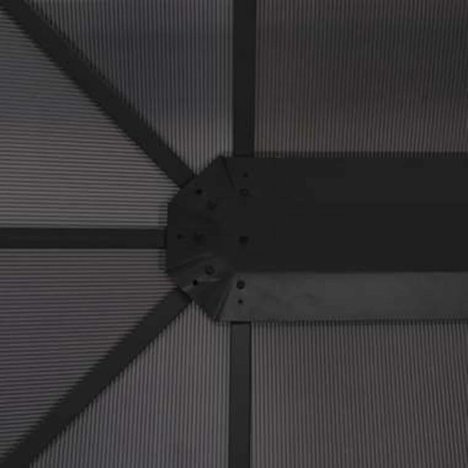 Het dak is gemaakt van 6 mm dik uv-bestendig pc-bord en beschermt je tegen verblinding en schadelijke uv-stralen van direct zonlicht. Het stevige frame is stevig geconstrueerd van sterk, roestbestendig aluminium en staal. Klittenband is inbegrepen voor eenvoudige bevestiging en montage van het tuinprieel.