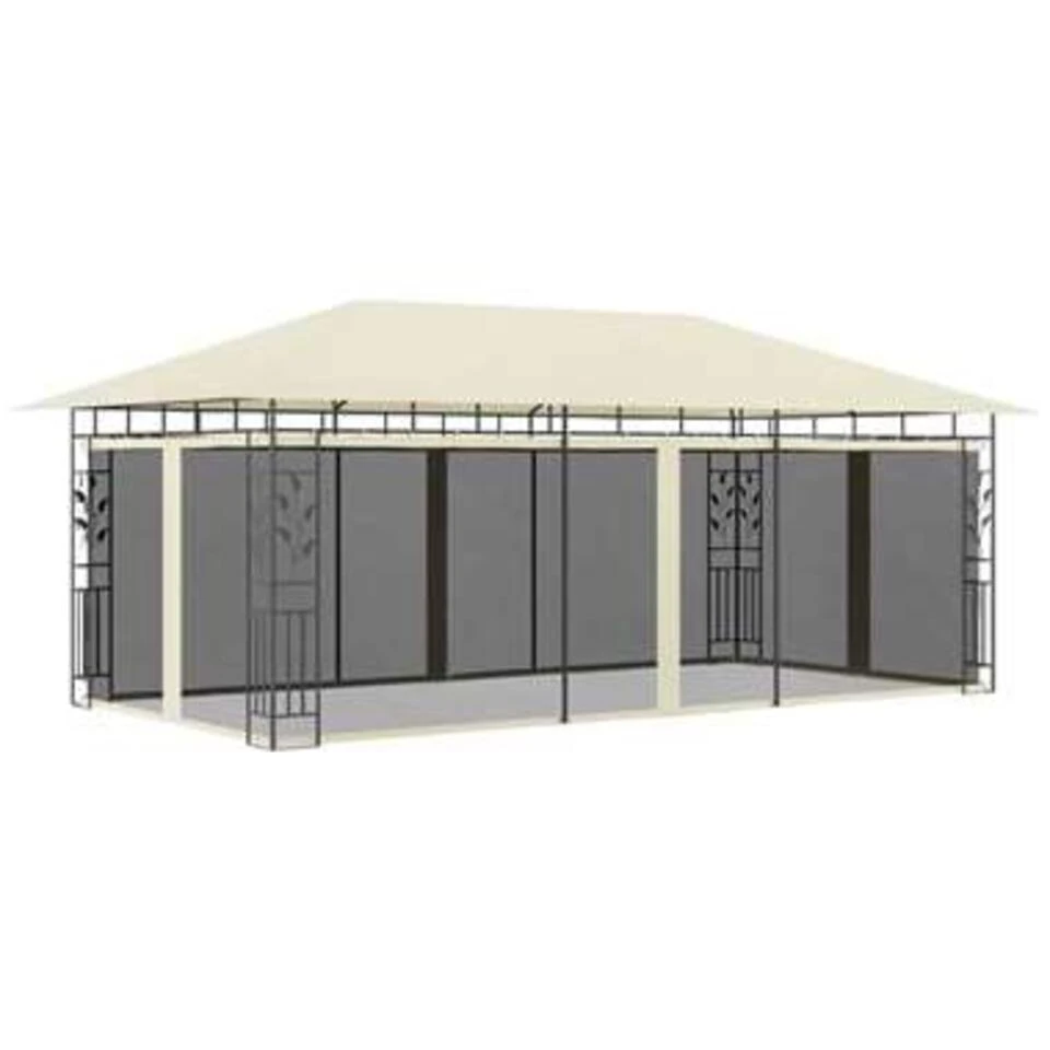 Het frame heeft een stevige metalen constructie waardoor het frame duurzaam en stabiel is. Een stoffen luifel beschermt je tegen de brandende zon, zodat je comfortabeler van je buitenactiviteiten kunt genieten. Deze tent, voorzien van muskietennetten, beschermt je tegen insecten en muggen. Zo kan je ongestoord genieten van je tijd in de tuin. Ook kan dit prieel in korte tijd worden geïnstalleerd.
