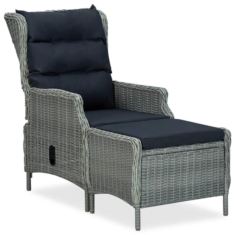 VidaXL Tuinstoel Verstelbaar Met Voetenbankje Poly Rattan Lichtgrijs